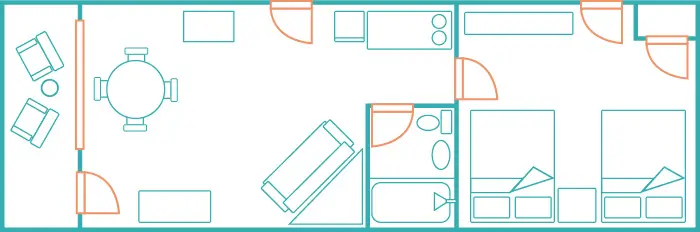 Type D – Ocean & Pool View Two Room Efficiency Suite
